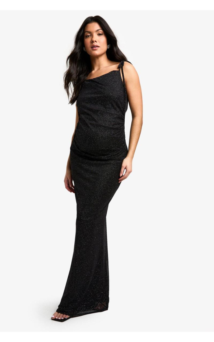 Максі-сукня для вагітних з блискучою сіткою і низькою спинкою