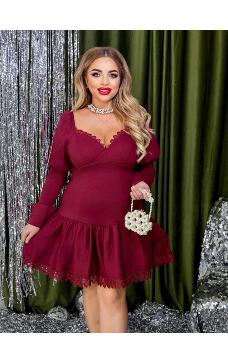 матеріал стрейчевий джинс-бенгалін, ідеально сідає по фігурі. По плечах та рукавах — гумка, що дозволяє носити як відкриті, так і закриті плечі. Низ озлоблен мереживом щильної в’язки. Виміри:. Перша Цифра — замір за виробом, друга — ступінь розтяжності: 42-44: ОГ 72-92, ОБ 75-96, довжина 87 см 46-48: ОГ 92-98, ОБ 94-102, довжина 87 см 50-52: ОГ 98-110, ОТ 79-100, ОБ 102-120, довжина 90 см 54-56: ОГ 106- 114, ОТ 84-108, ОБ 108-130, довжина 90 см 58-60: ОГ 114-125, ОТ 92-120, ОБ 114-140, довжина 90 см