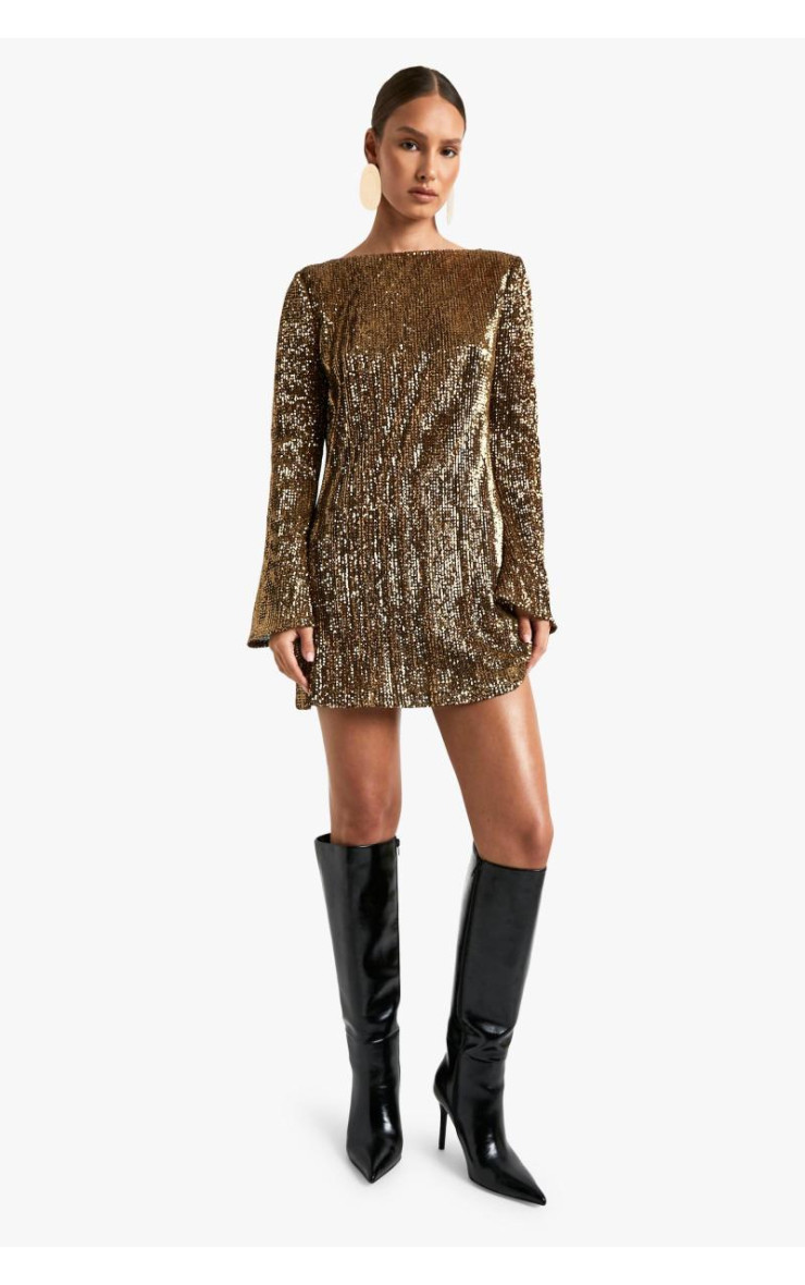 Міні-сукня з розкльошеними рукавами з вигнутою спиною