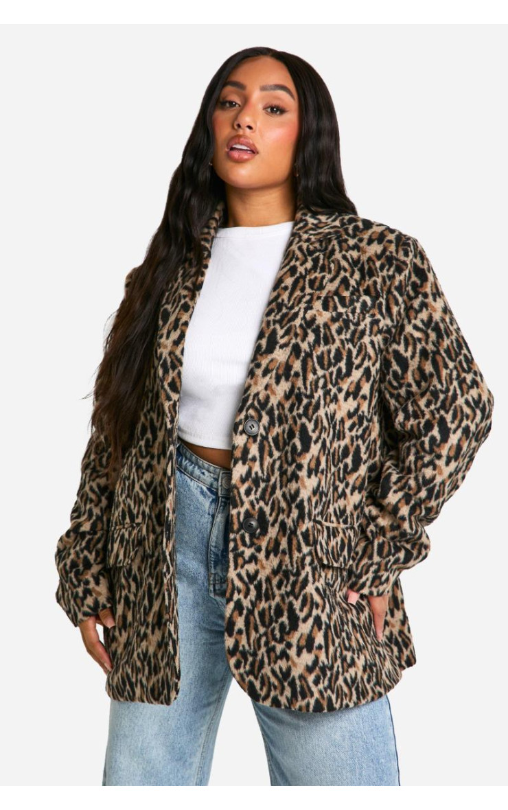 Додатково вовняний піджак із леопардовим принтом на плечі