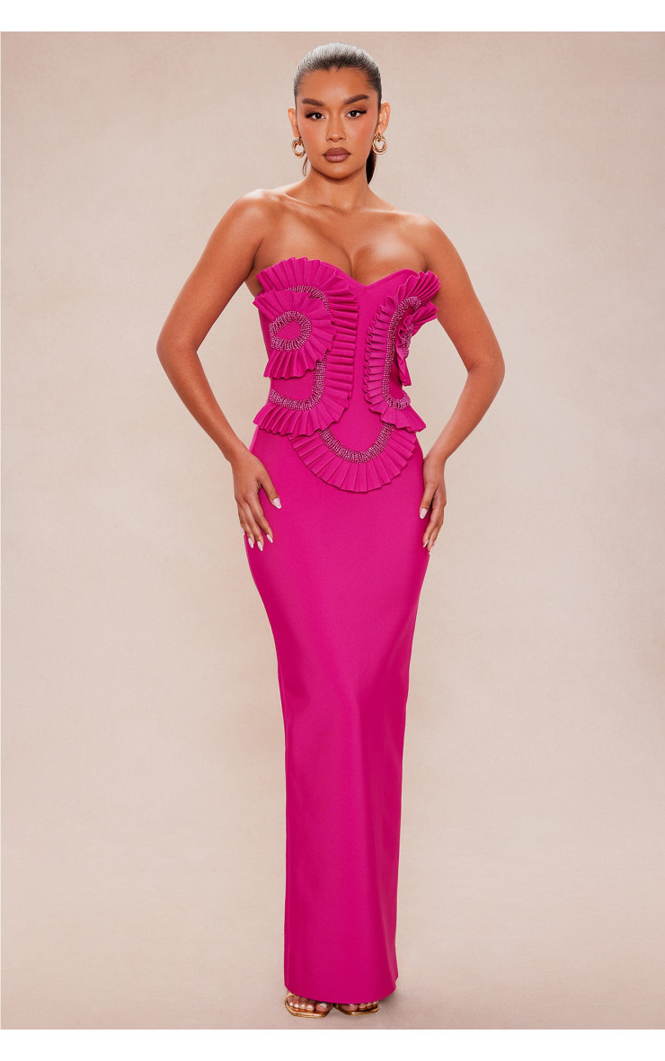 Розкішна бандажна сукня максі, яка підкреслить вашу індивідуальність та бездоганний смак. Відкриті плечі та вишуканий виріз "сердечко" додають образу чуттєвості. Наявність силіконової стрічки забезпечує надійну фіксацію сукні. Елегантний волани та розріз додають динамічності, а застібка-блискавка на спині - практичності. Блискучий декор з бісеру робить цю сукню справжнім витвором мистецтва. Еластична тканина (поліестер, спандекс) гарантує ідеальну посадку та комфорт. Ідеальний вибір для незабутнього вечора.
