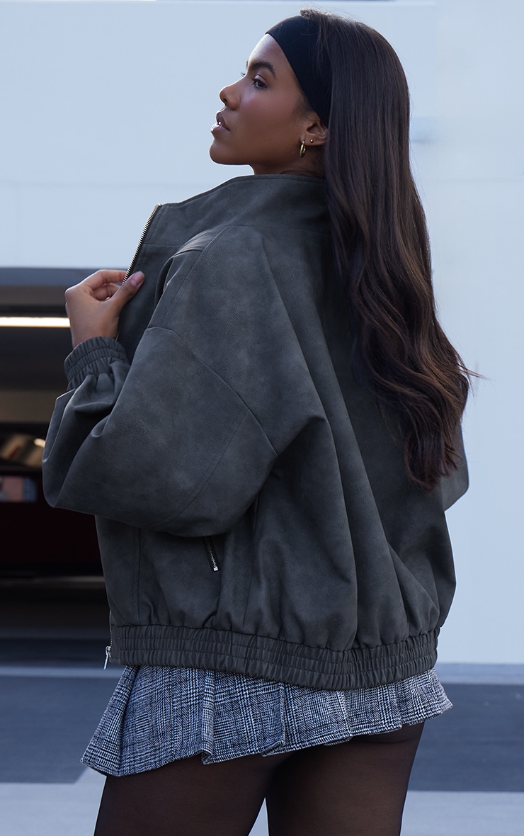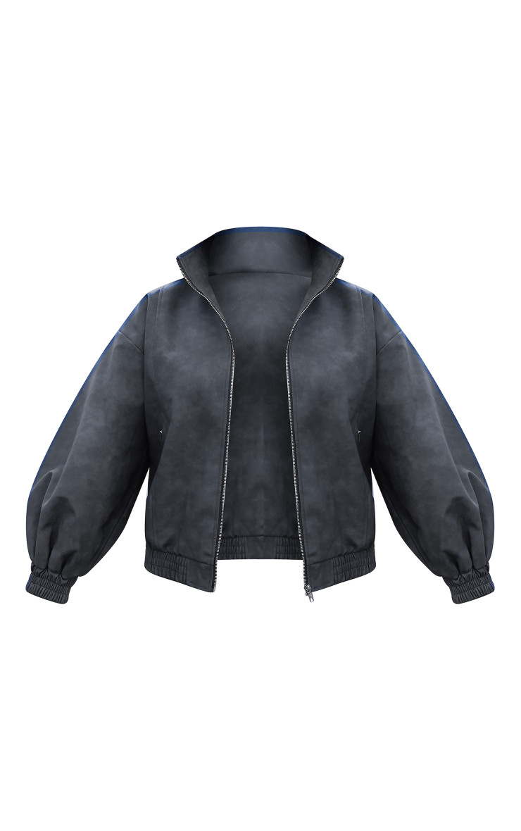 Бомбер з високою горловиною з текстурованою штучної шкіри вугільного кольору