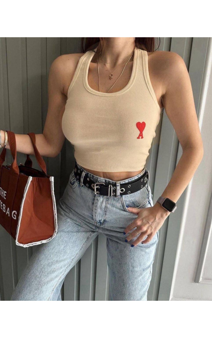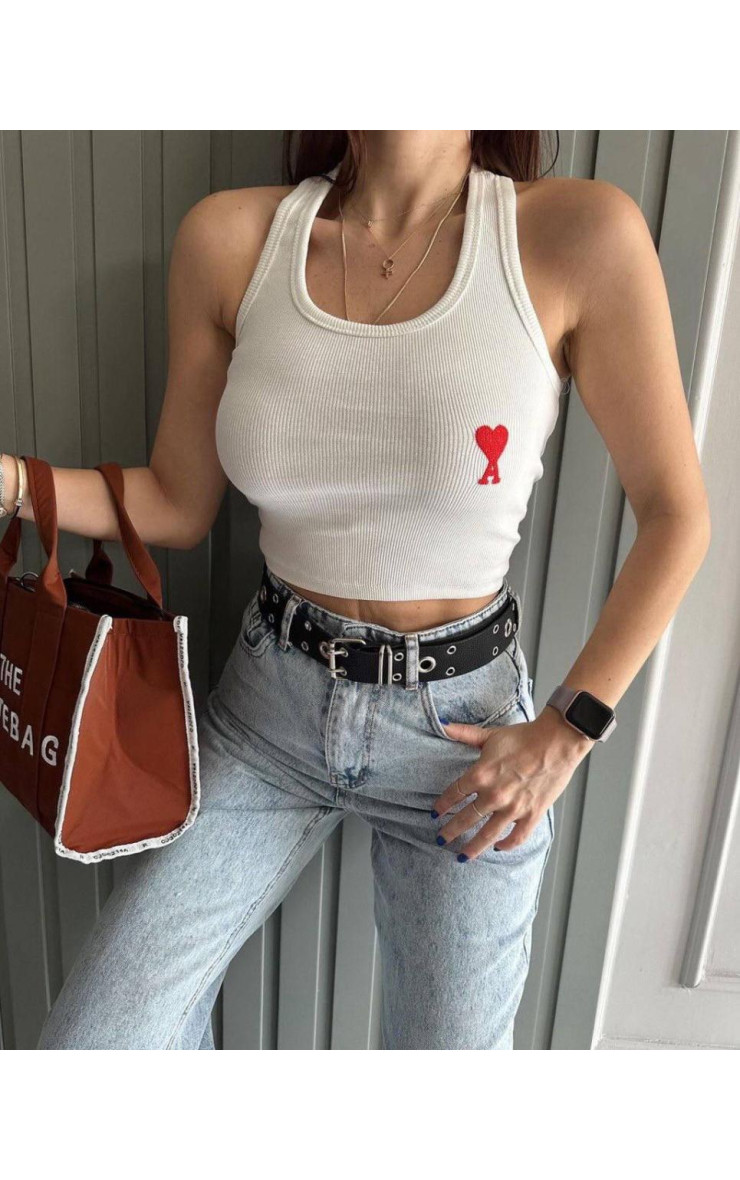 Топ-майка з турецького рубчика з вишивкою Модель: Розміри: (42-44), (46-48)