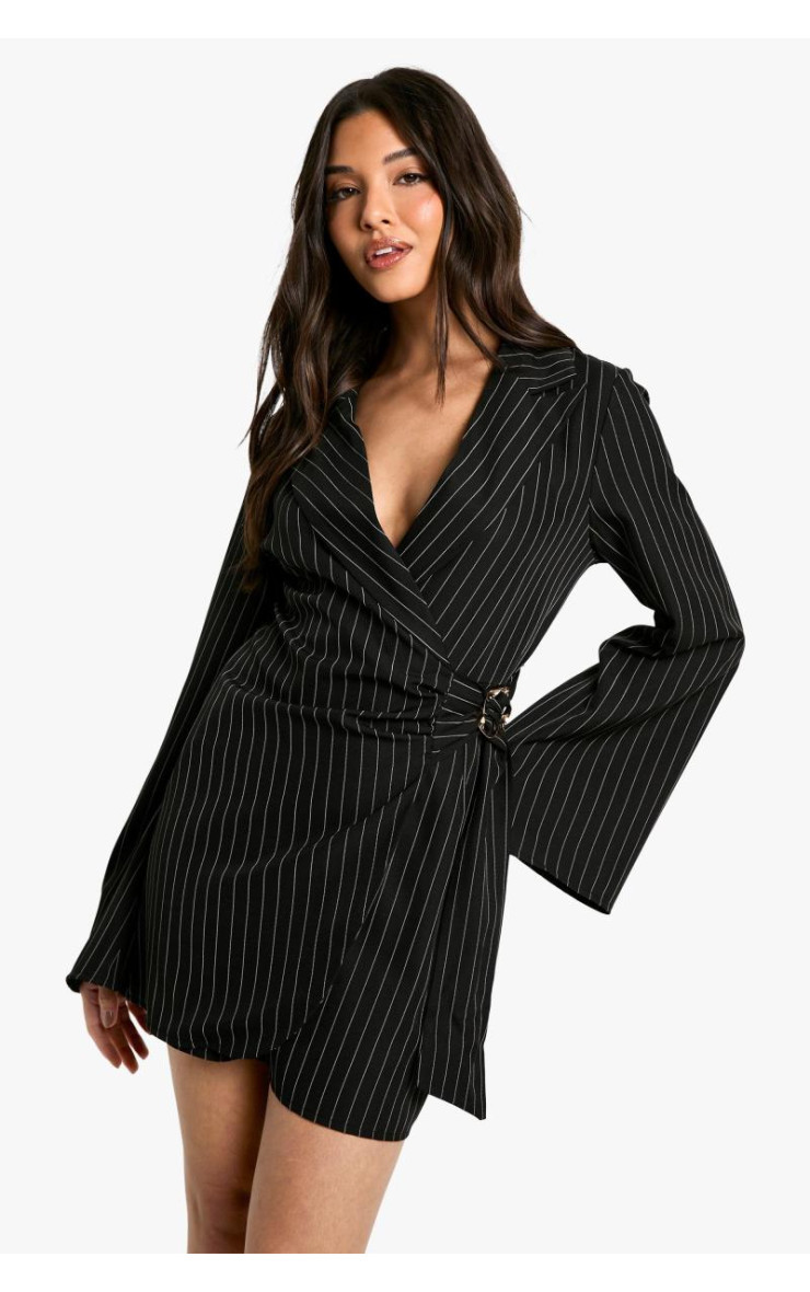 Сукня-піджак у тонку смужку з деталями та зав’язкою на талії