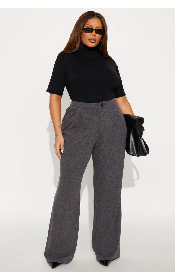 Елегантні штани з широкими штанинами та довжиною 33 дюйми, прикрашені витонченими складками спереду. Застібаються на ґудзик та блискавку, мають стилізовані задні кишені. Склад тканини: 54% поліестер, 31% віскоза, 12% нейлон, 3% спандекс, що забезпечує комфорт та елегантний вигляд.