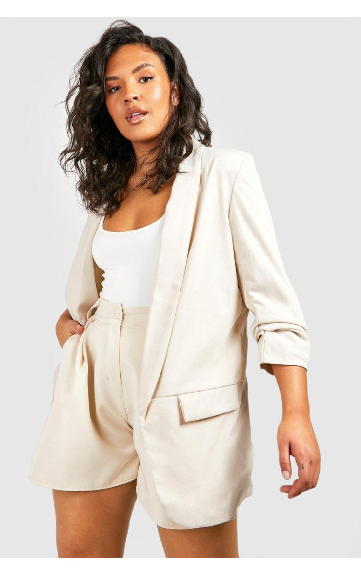 Оновіть свій офісний одяг за допомогою цього зухвалого піджака великого розміру. Цей ексклюзивний тканий блейзер, створений для дівчат із пишними формами, має рукави 3/4 із рюшами для сучасного стилю та фальшиві кишені з боків для м’якої обробки. Об’єднайтеся з командою, щоб виглядати з понеділка по п’ятницю, який ми любимо.