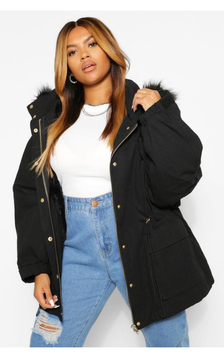 Плюс пальто-парка з капюшоном на штучному хутрі
