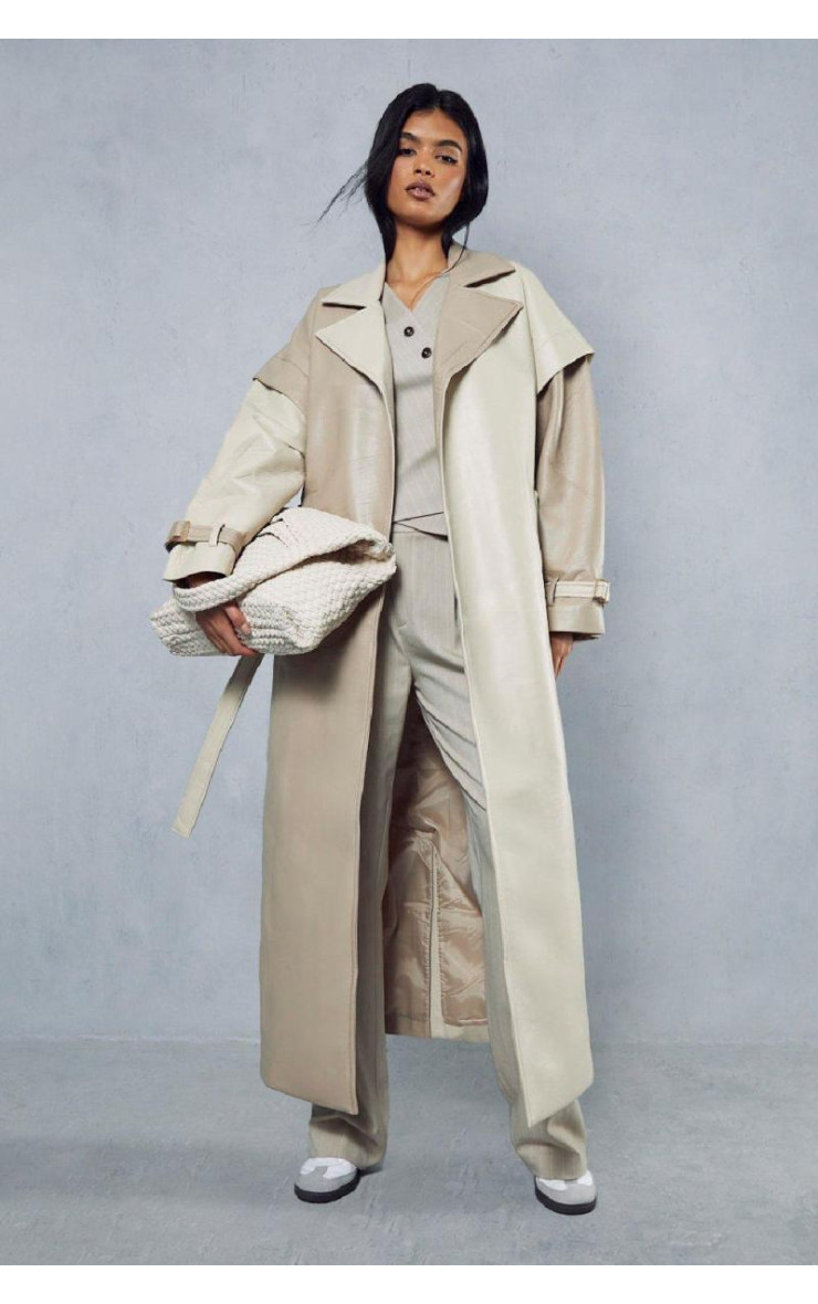Це довге траншея з Medpap має гладкий монохромний дизайн з контрастними панелями у висококласному покритті. Гладка, шкіряна текстура прекрасно втішає фігуру. Структурований, але протікає в силуеті, він має широкі зубчасті лацкани, епалетки на плечах і регульовані манжети ременів, які підбирають для більш пристосованої форми. Пальто виглядає однаково шикарним застебленим або зношеним, підкладеним на талії. Для універсального денного вигляду поєднайте з непрозорими колготками, чоботами з підбором та перемичкою в координаційному нейтральному тоні. Перехід його в вечір, переходячи на голі ноги, блукаючі підбори та камізол або ковзати вгорі чорним або білим кольором. Це пальто пропонує нескінченний потенціал укладання як для випадкових зборів, так і для ночей.