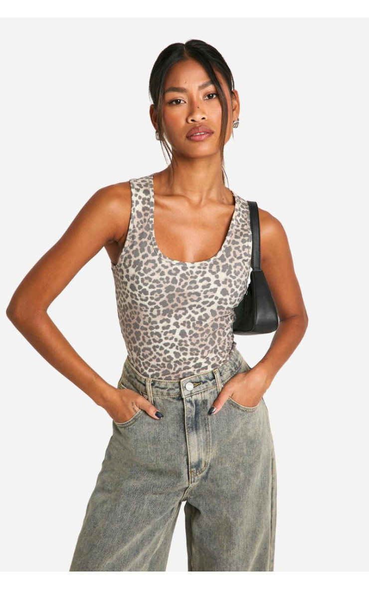 Укорочений топ із бавовняним ковшом і гонщиком із базовим тваринним принтом