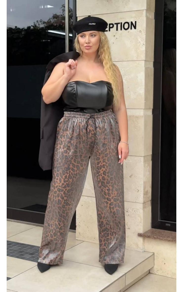 Матеріал : віскон з легким блиском ( 90% котон , 10% поліестер). Виробництво Туреччина , висока якість. Дихаюча тканина. Не мнеться . Удобна в носкі. Брюки високої посадки , талія на резинці, кишені. Довжина брюк 79/110. Заміри по виробу: 1 р (42-46): ОС 102, ОТ 60-100 2 р (48-54): ОС 119 см, ОТ 77-118 3 р (56-62)- ОТ 84-133, ОС 135 см 4 р — (64-72)- ОТ 92-150, ОС 150 см