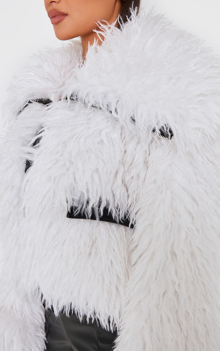 Кремова куртка на блискавці з кучерявим штучним хутром і контрастною обробкою з поліуретану